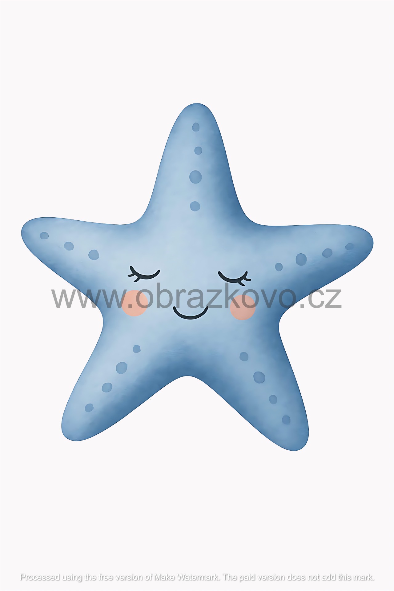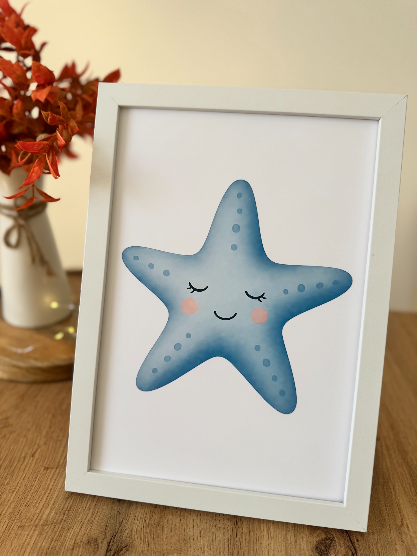 Roztomilý obrázek mořské hvězdice v jemných přírodních tónech, ideální jako dekorace do dětského pokojíčku. Vytisknuto na kvalitní matný papír. Barevný motiv s jemným pozadím, který se hodí pro kluky i holčičky.