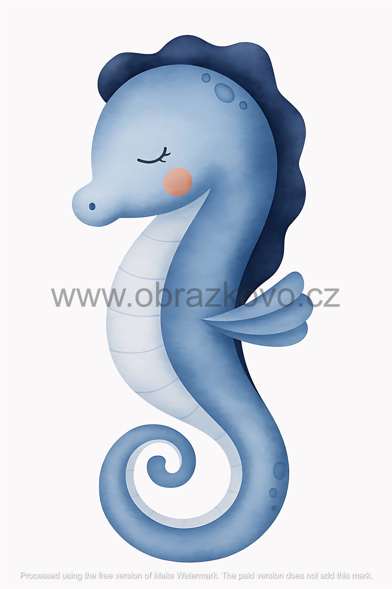 Roztomilý obrázek mořský koník v jemných přírodních tónech, ideální jako dekorace do dětského pokojíčku. Vytisknuto na kvalitní matný papír. Barevný motiv s jemným pozadím, který se hodí pro kluky i holčičky.