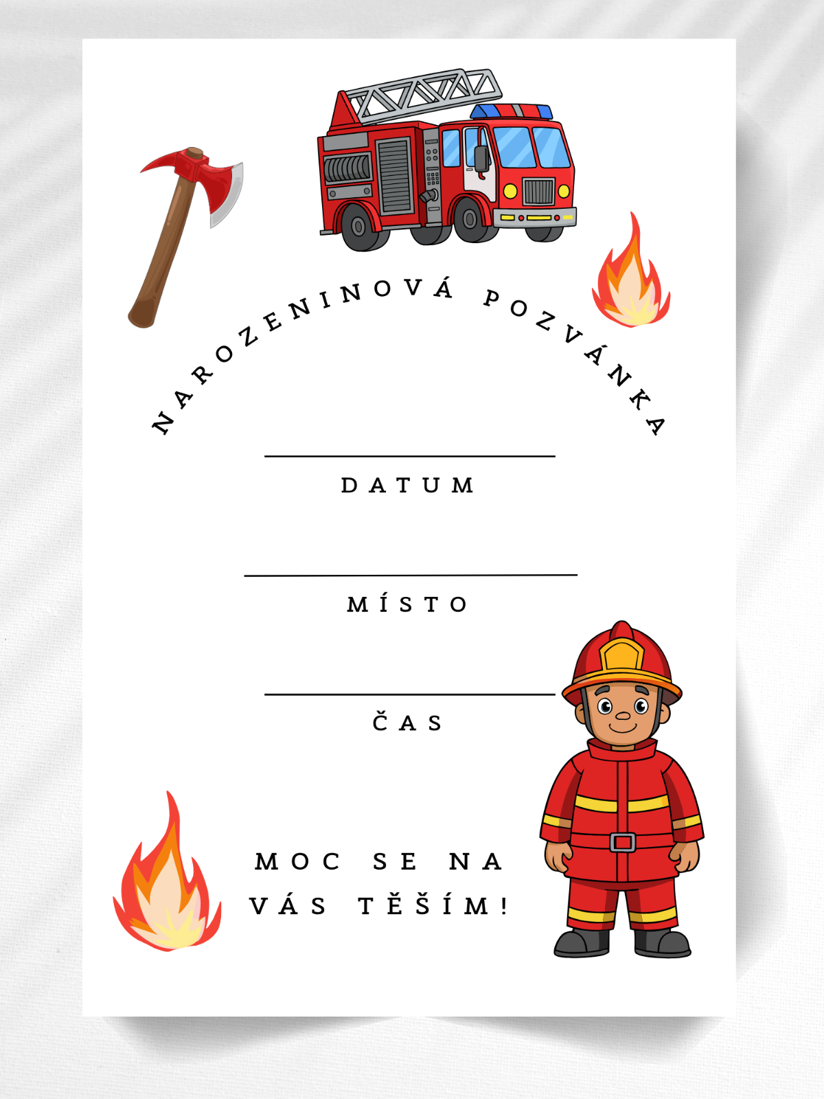 Roztomilé pozvánky na dětskou oslavu, připravené k ručnímu doplnění místa, data i času konání. Sada obsahuje 10 kartiček a 10 bílých obálek. Na obálku lze případně dopsat pro koho je určená. Krásný hasičský motiv.