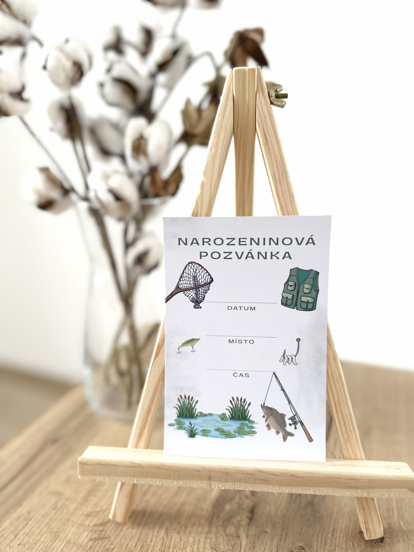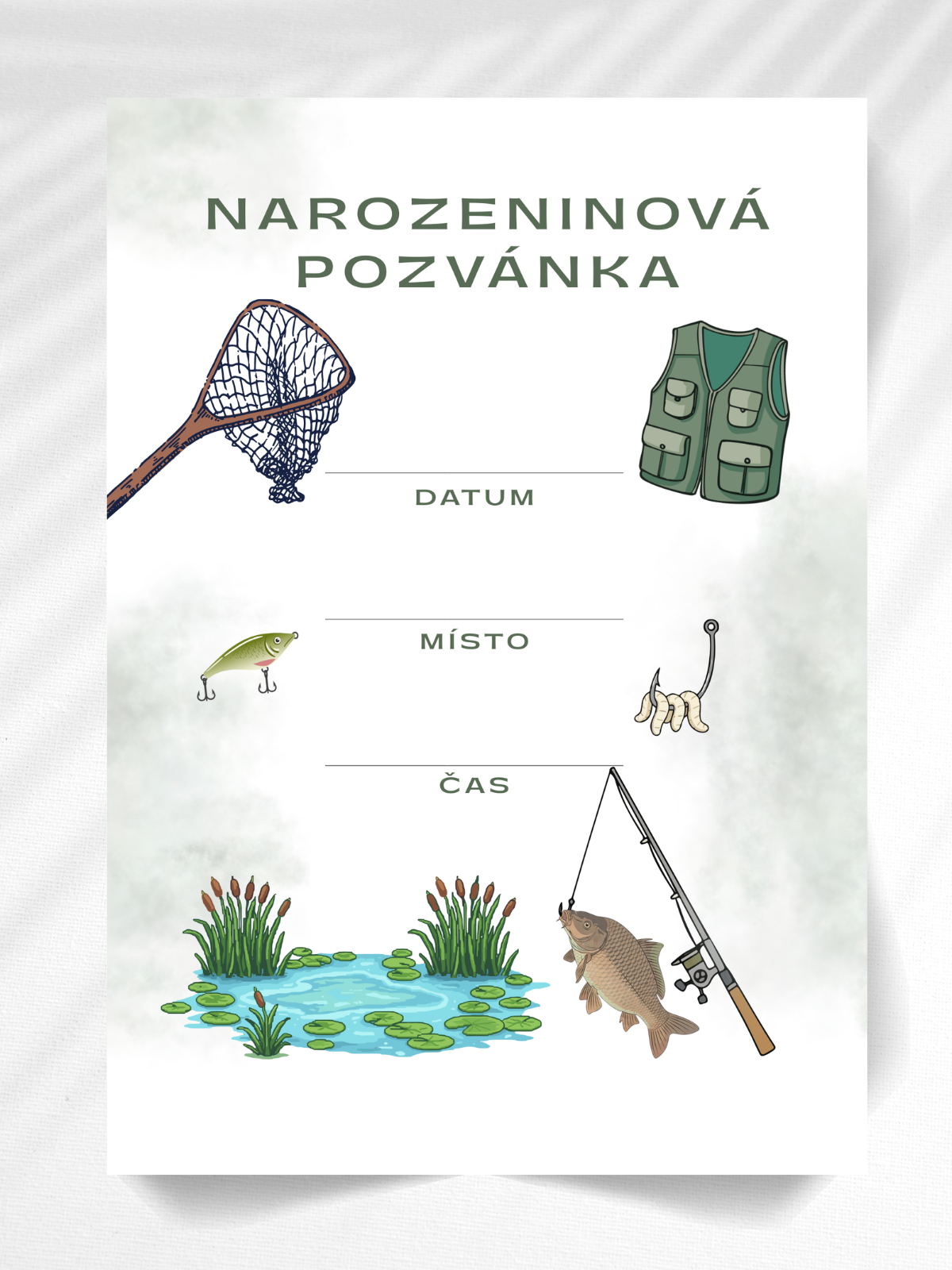 Roztomilé pozvánky na oslavu, připravené k ručnímu doplnění místa, data i času konání. Sada obsahuje 10 kartiček a 10 bílých obálek. Na obálku lze případně dopsat pro koho je určená. Krásný motiv pro rybáře.