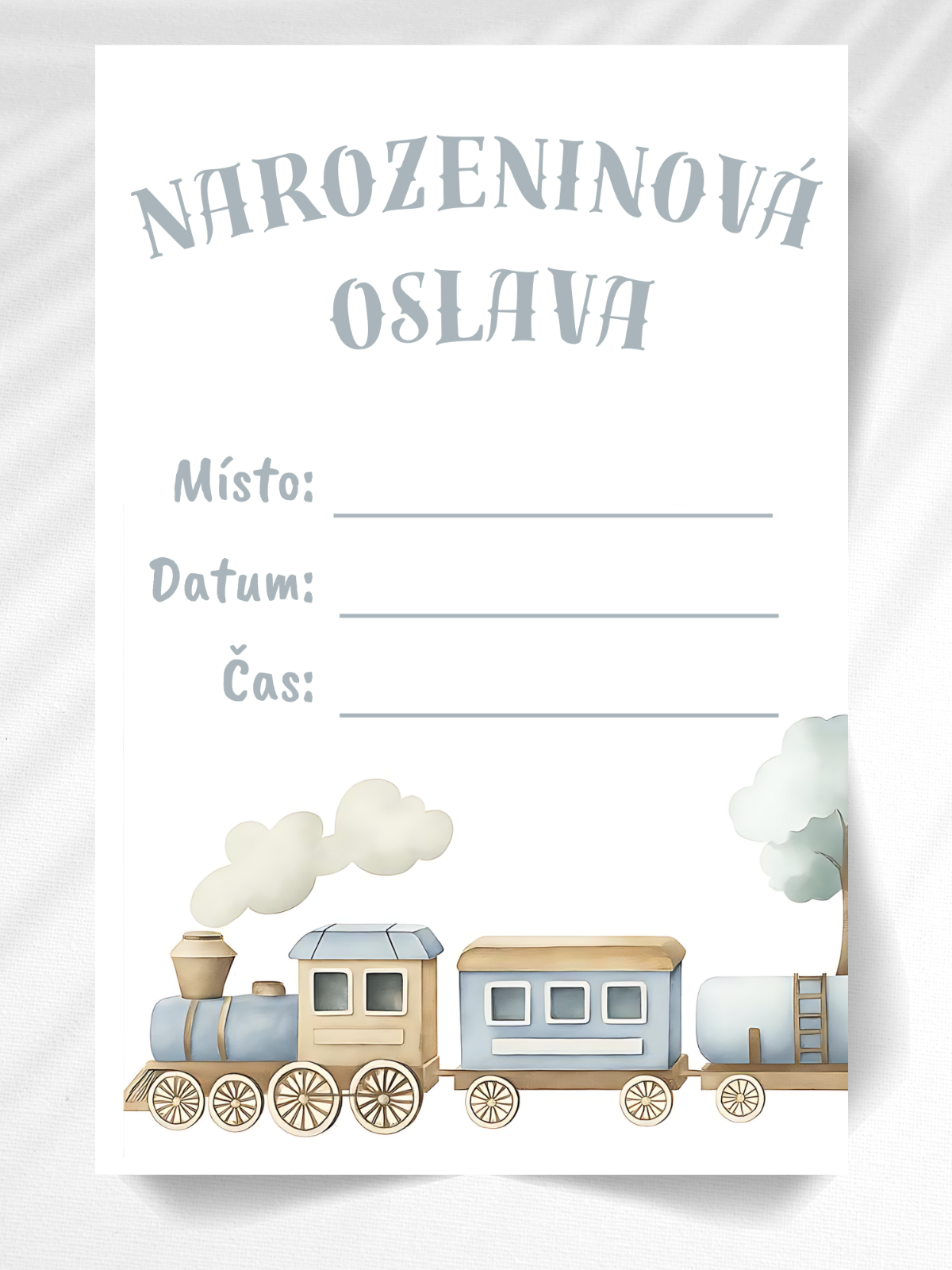 Roztomilé pozvánky na dětskou oslavu, připravené k ručnímu doplnění místa, data i času konání. Sada obsahuje 10 kartiček a 10 bílých obálek. Na obálku lze případně dopsat pro koho je určená. Motiv vláčku.