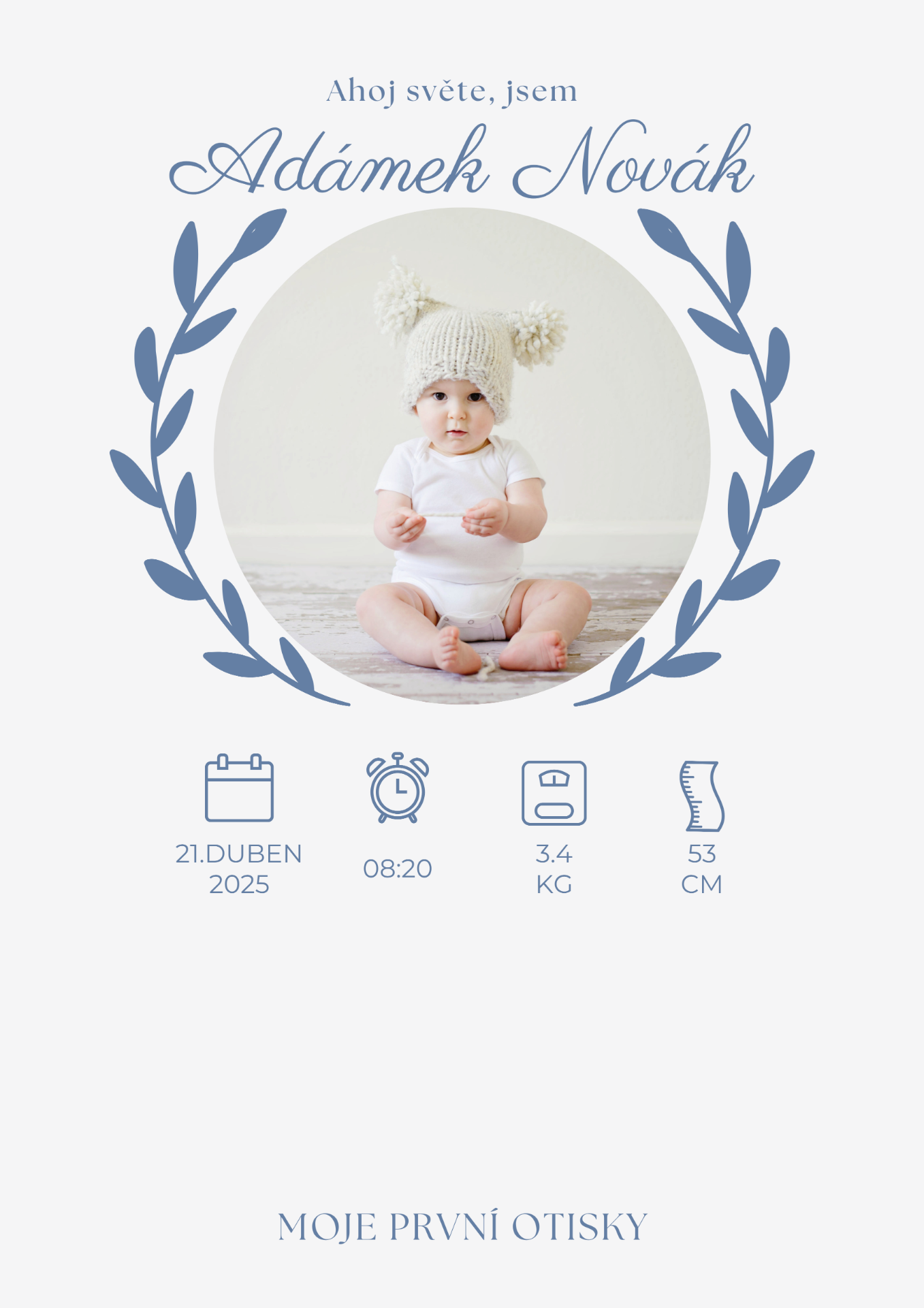 Jméno dítěte, datum a čas narození, váhu a výšku napište do poznámky, kterou naleznete při dokončování objednávky.
