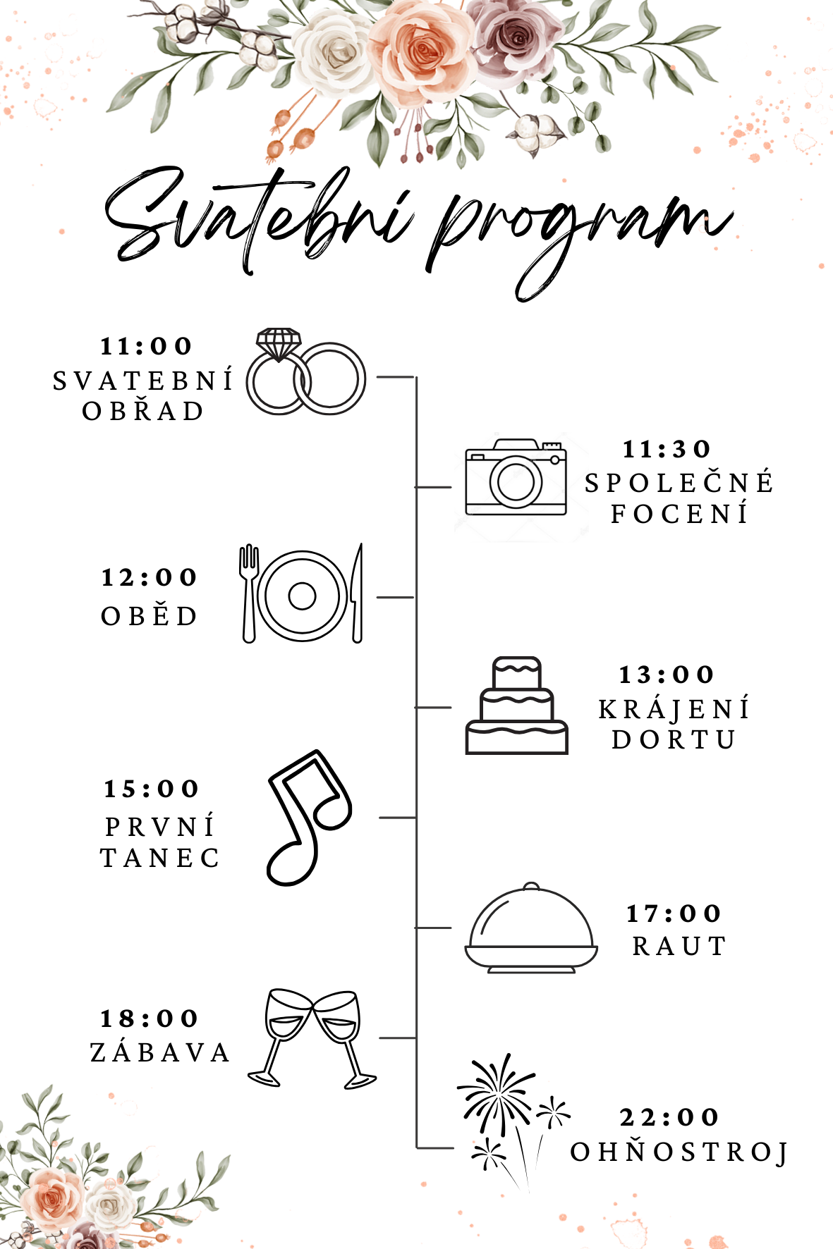 Svatební program - formát 10x15cm, kvalitní matný papír 260g/m2, vhodné k položení na stůl