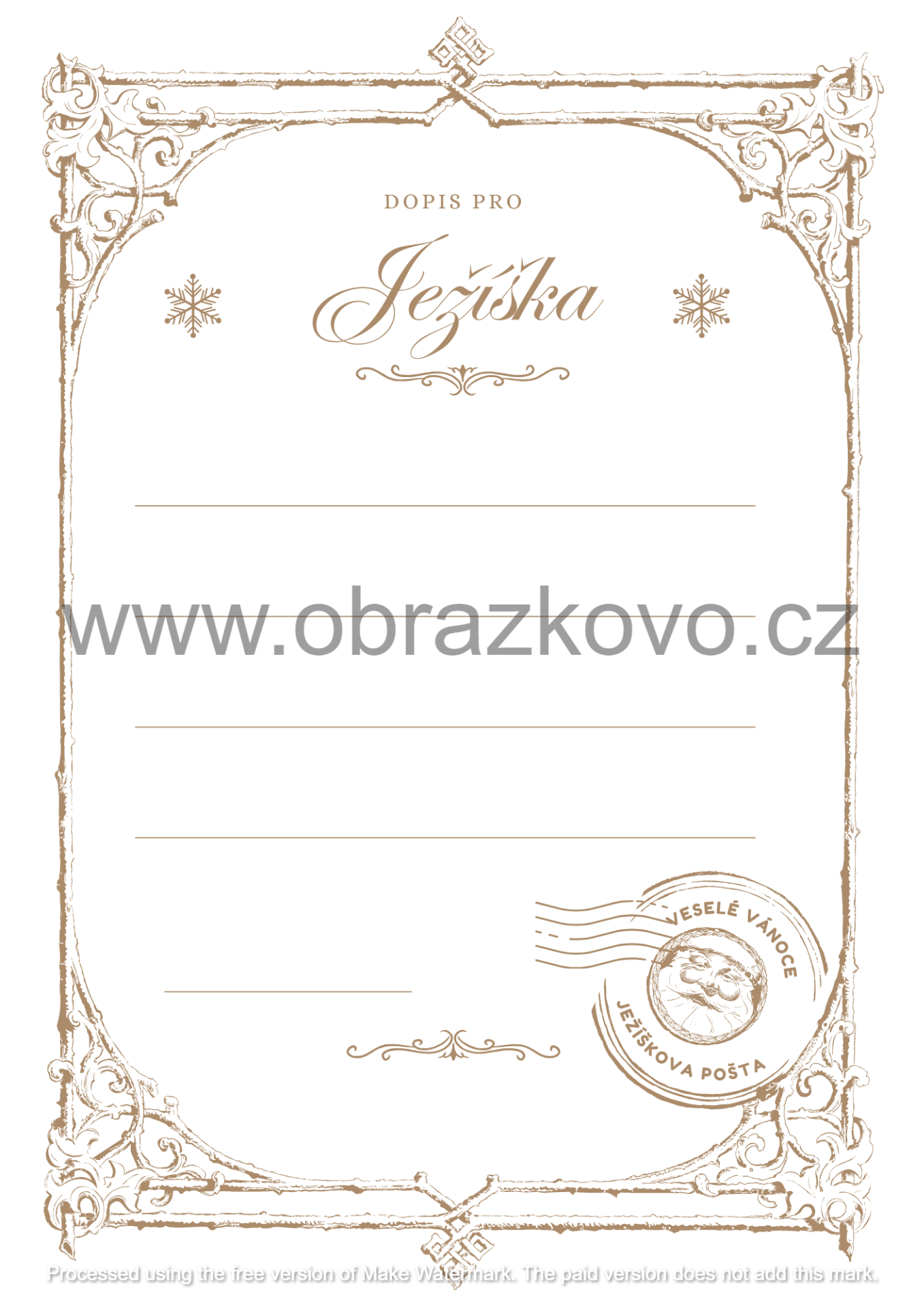 Dítě si může dopis vyplnit samo nebo společně s rodiči. Může napsat co si přeje pod stromeček a jak se mu dařilo celý rok a připojit obrázky nebo namalovat na druhou stranu dopisu, která je volná. Obálka s vánoční známkou a nápisem "Pro Ježíška od..."udělá ten pocit opravdového dopisu ještě reálnější.