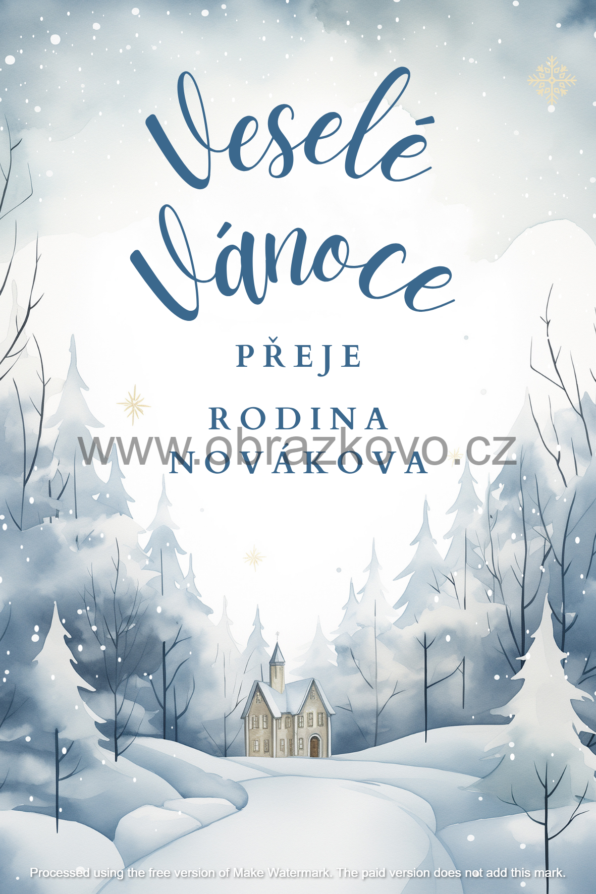 Vánoční přání jsou ve formátu 10x15 cm. Jméno nebo příjmení, které má být uvedeno na přání prosím uveďte do poznámky k objednávce. Krásný jemný motiv vánoční krajiny.