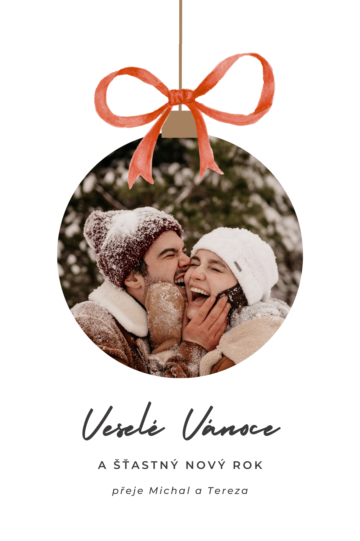 Sada vánočních přání obsahuje 5ks vánočních přání s vlastní fotografií i jménem a 5ks bílých obálek.