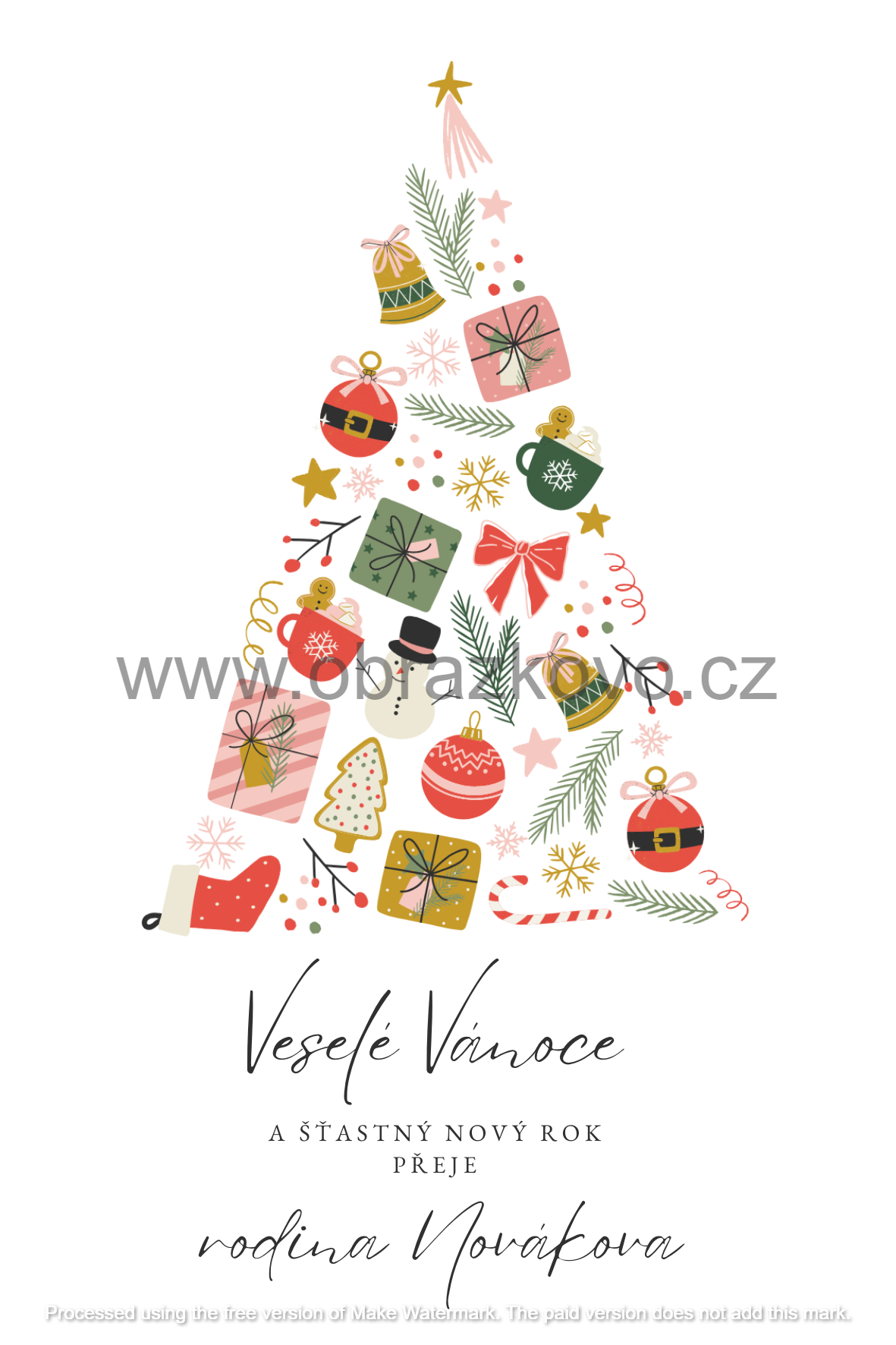 Vánoční přání jsou ve formátu 10x15 cm. Jméno nebo příjmení, které má být uvedeno na přání prosím uveďte do poznámky k objednávce. Krásný jemný motiv vánočního stromečku s ozdobami.