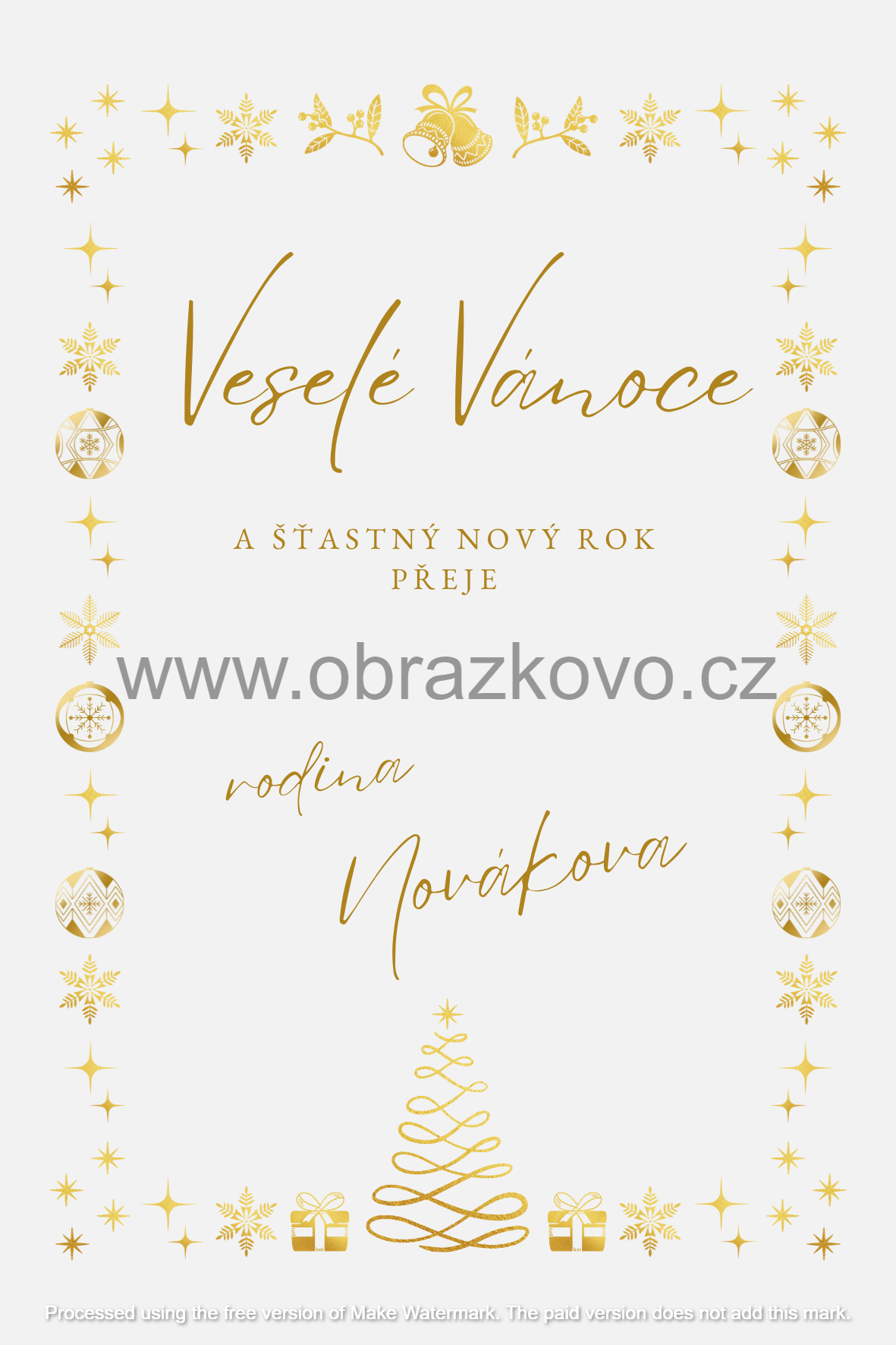 Vánoční přání s vlastním jménem včetně obálek (5ks) - zlatý motiv